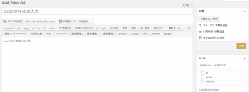 有効化されると管理画面左にあるメニューにAdsが追加されるので、そこからAdd New Adをクリックし