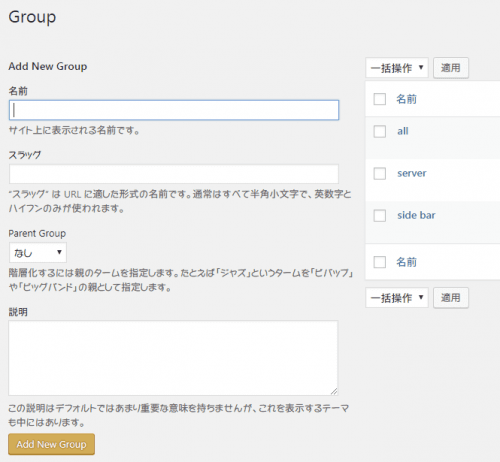 ここからは実際にページなどに使うショートコードやPHPの設定画面です