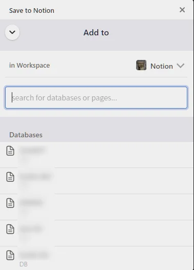ツールバーのアイコンからsave to notionを起動し、保存するためのページ、または、データベースを選択します