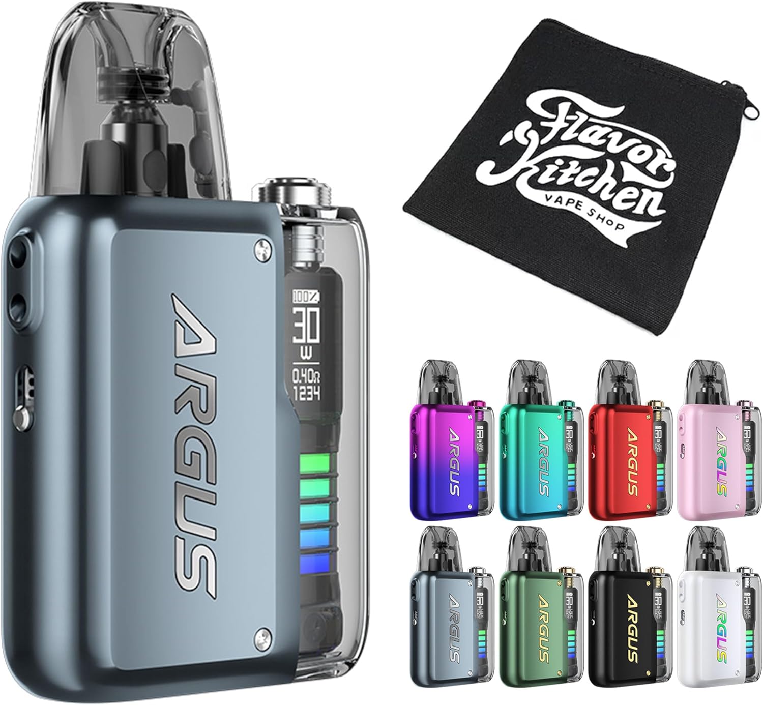 ArgusはVWタイプの調整が可能で5W~30Wまで対応、Podを装着すると自動でワット数が設定され便利、勿論ここから手動調整可能